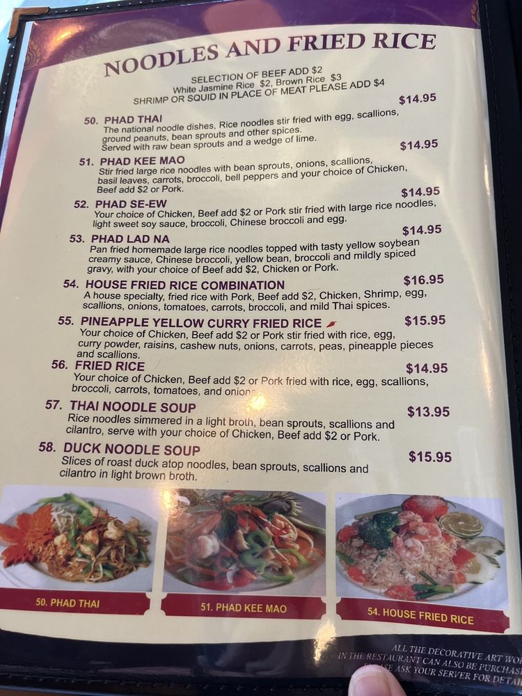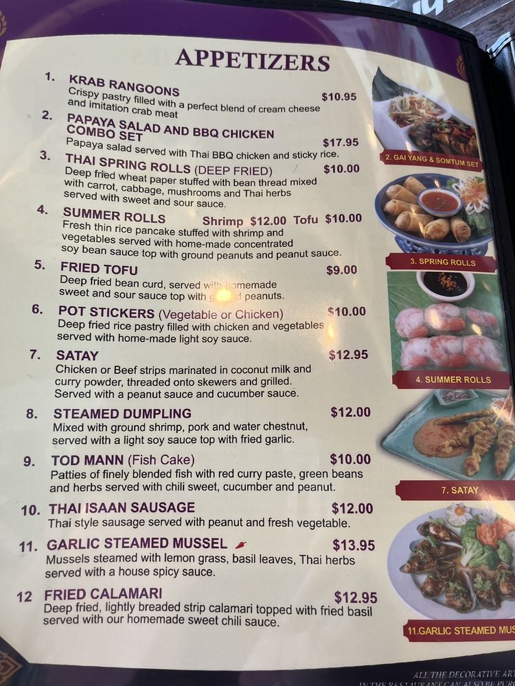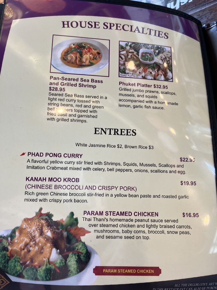 Thai Thani Restaurant, nestled in Walnut Creek, CA, offers a unique fusion of Thai and Japanese cuisine in a casual yet trendy setting. Known for its extensive menu, the restaurant provides options for vegans, vegetarians, and meat lovers alike. From the flavorful Samosa Majestique and Thai Spring Rolls for starters to the Param Steamed Chicken and Salmon Glory for entrees, each dish is crafted with care and packed with authentic flavors. Customer reviews rave about the friendly service and welcoming ambiance, making it a go-to spot for a satisfying meal. Whether you're in the mood for traditional Thai dishes or innovative Japanese fare, Thai Thani Restaurant promises a delightful dining experience that will leave you craving for more.